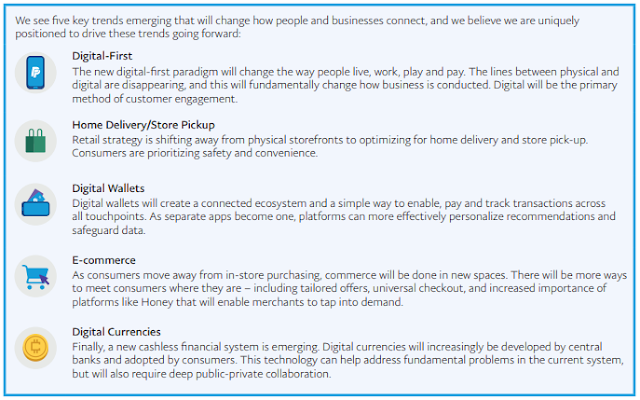 If it makes it through those filters, you could then try to identify all the ways in which you could be wrong. As well as answering the qualitative questions cited above, along with whatever else you think can materially impact the value of the business. During the process you can look at things such as the list of key trends that PayPal's CEO cited in his latest shareholder letter. Information like this can help inform you decision.